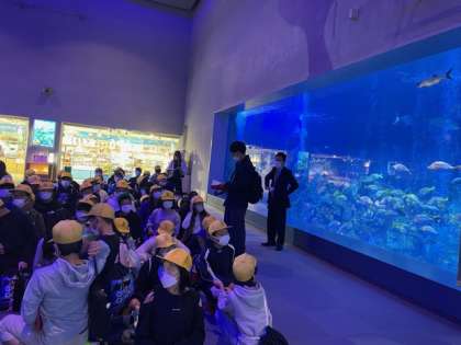 鳥羽水族館に到着しました。 すぐにクラス写真を撮りました。