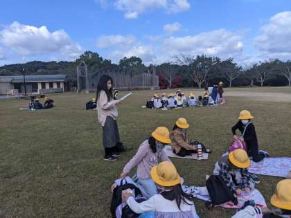 昆虫館の見学が終わり、隣の公園でちゅうしょくです。