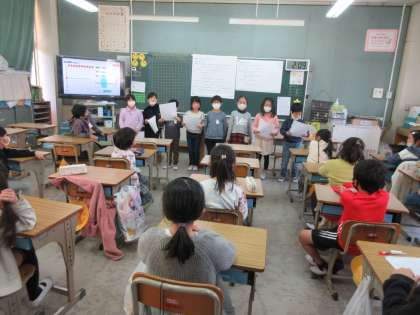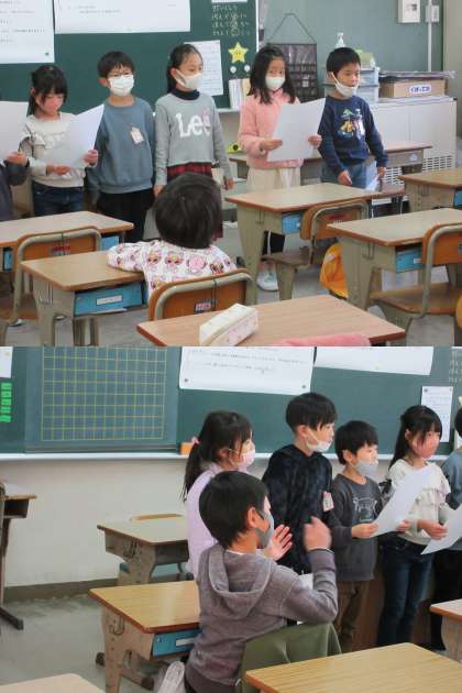 12月2日(金)2年生 公開日 2022/12/02 更新日 2022/12/02 2年 おもちゃランドでの「はじめのことば」や「おわりのことば」を担当するお友だちが前に出ました。とても緊張しますが1組全員で応援しています。
