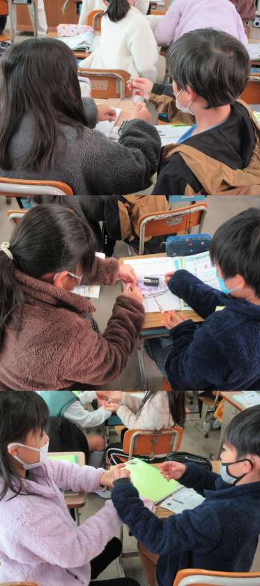 12月5日(月)3年生 公開日 2022/12/05 更新日 2022/12/05 3年 理科の時間,1組の様子です。 二人ペアになって,豆電球と乾電池をどのようにつなぐと明かりがつくのかを考えました。