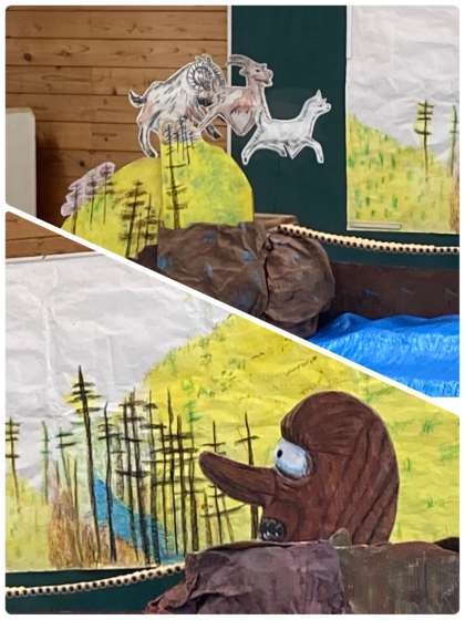 特に最後の「さんびきのやぎのがらがらどん」は,すごい舞台装置とペープサートを使って人形劇のように読み聞かせをしてもらいました。