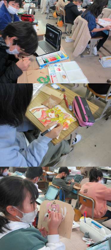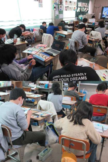 1組の図工の時間は,糸のこデザイントレーの作成です。子どもたちの真剣な表情がとても印象的です。