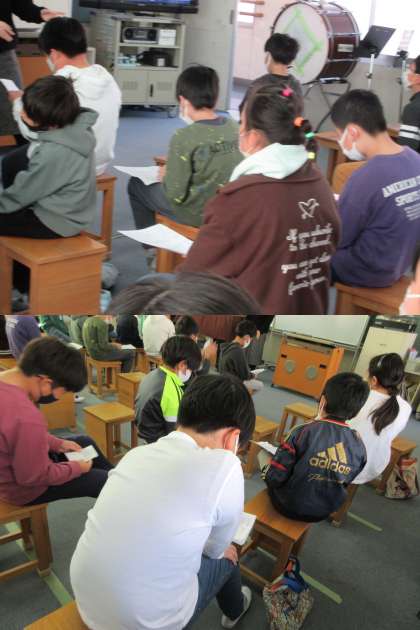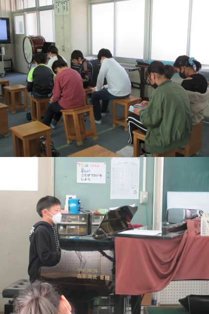 12月9日(金)5年生 公開日 2022/12/09 更新日 2022/12/09 5年 音楽の時間,2組の様子です。 ♪伝えたい言葉♪(二部合唱)を練習しています。 歌詞一つひとつの言葉の意味をかみしめたいですね。