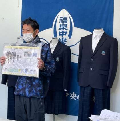 朝会の最後には福泉南中学校の新しい制服紹介もありました。
