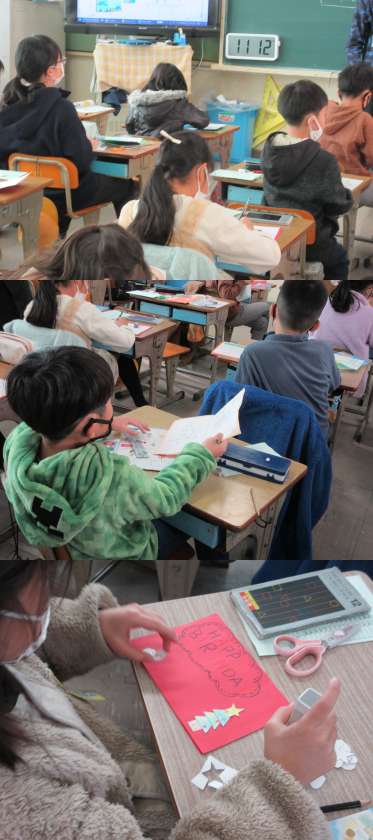 外国語活動では「クリスマスメッセージカード」を作成していました。