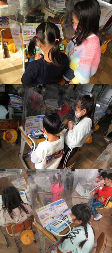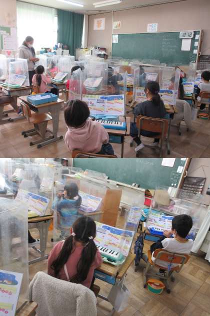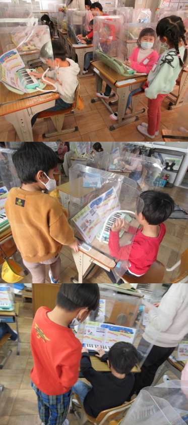 12月12日(月)1年生 公開日 2022/12/12 更新日 2022/12/12 1年 2組のおんがくの時間です。 ♪きらきらぼし♪のメロディが教室いっぱいに広がっています。しっかりと指を広げて弾けたかな。