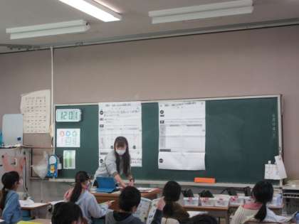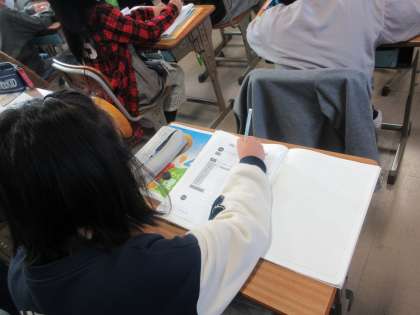 理科の授業です。 金属は温めると大きさや重さはどうなるのか。 実験を前に予想をたてています。