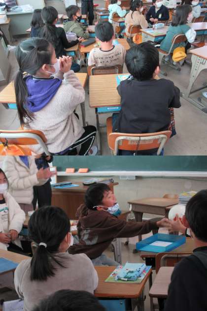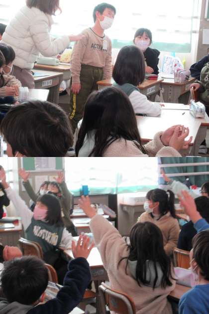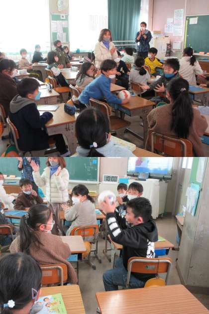 12月15日(木)3年生 公開日 2022/12/15 更新日 2022/12/15 3年 外国語活動,1組の様子です。「Do you like 〇〇?」の答え方などをボールゲームを通し,NS(ネイティブスピーカー)の先生の声かけにのせられて楽しく学んでいます。