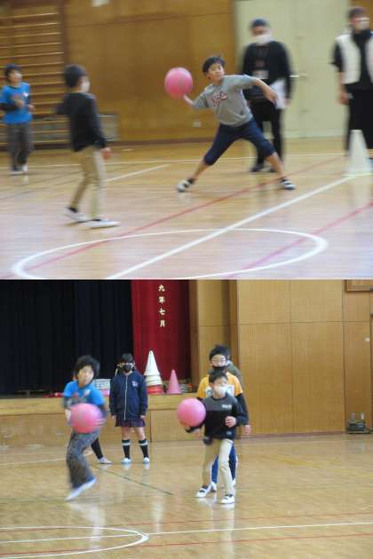 体育館に集合し,先生の説明をしっかり聞いた後,楽しみなドッジボールのスタートです。