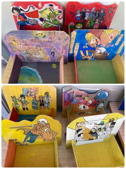 写し取るイラストの配置や,横板,前板のデザインは子どもたちで工夫していました。