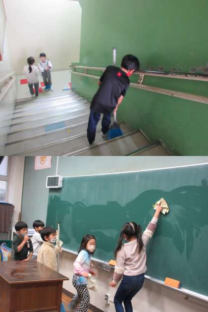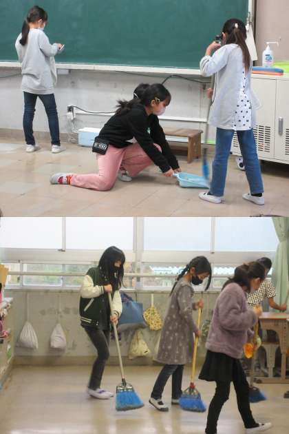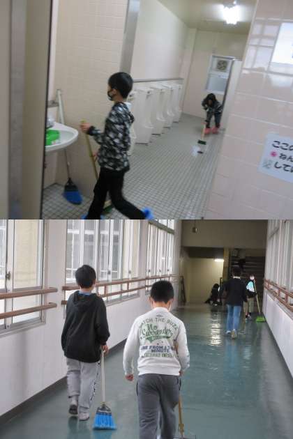 いつもより長い時間ですが丁寧に掃除しています。
