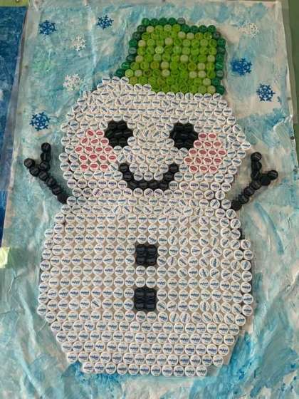(写真はいずみ学級制作のペットボトルアートです。とてもかわいい雪だるまです)