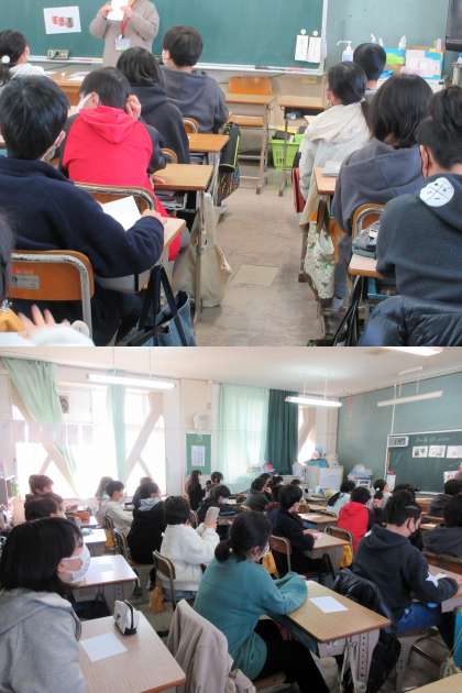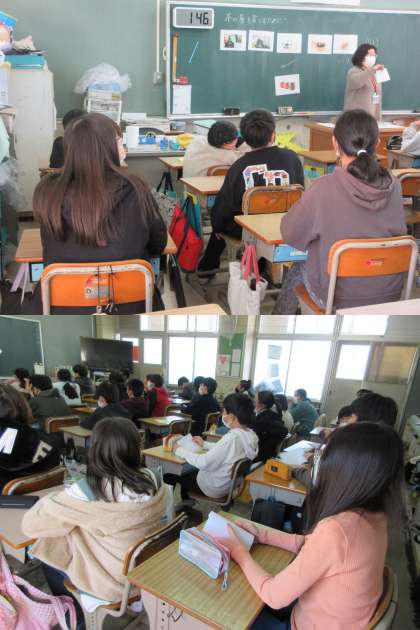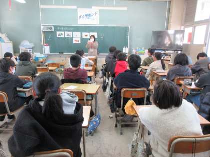 今月17日に実施する「茶の湯体験」の説明を聞いている1組の子どもたちです。