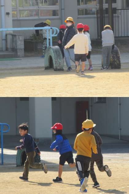 予鈴が鳴りました。子どもたちはかけ足で校舎へ戻っています。