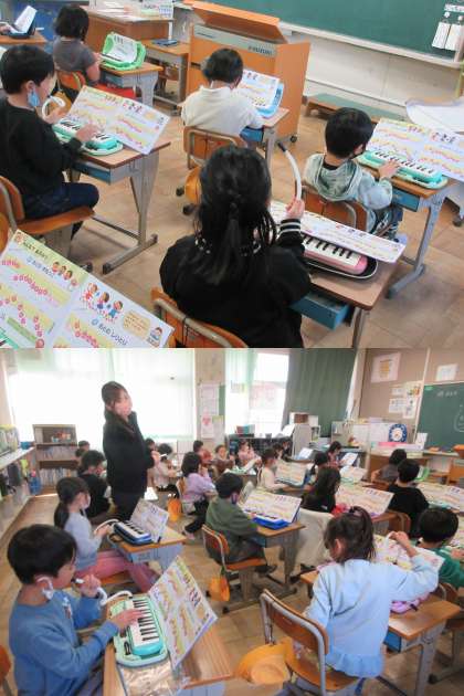 1月12日(木)1年生 公開日 2023/01/12 更新日 2023/01/12 1年 音楽の時間,1組の活動の様子です。 鍵盤ハーモニカで『かえるのがっしょう』や『きらきらぼし』のメロディーが響いていました。
