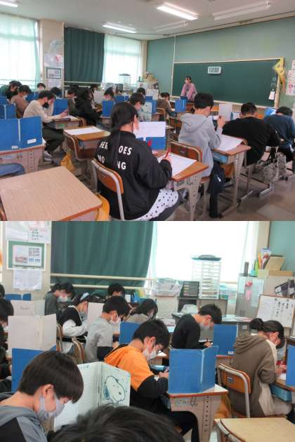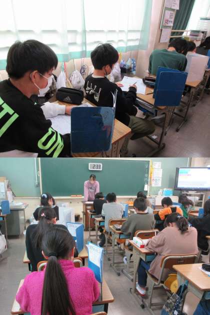 1月16日(月)5年生 公開日 2023/01/16 更新日 2023/01/16 5年 3組は算数確認テスト(力だめし)の答え合わせを行っていました。 一つひとつの確認に一喜一憂する子どもたちでした。