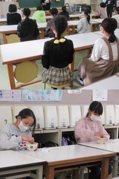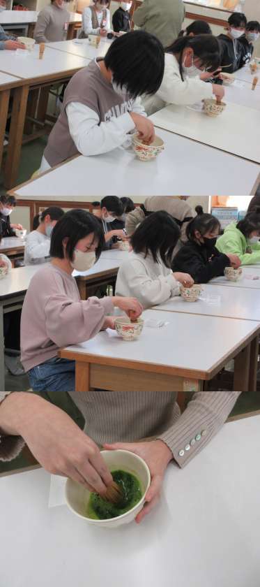 続いて2組の体験の様子です。姿勢よく臨みました。堺市に住む私たちです。茶の湯体験を通じて,素晴らしい歴史や文化に触れることができました。