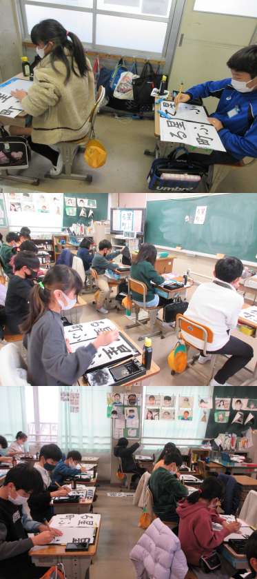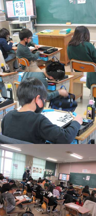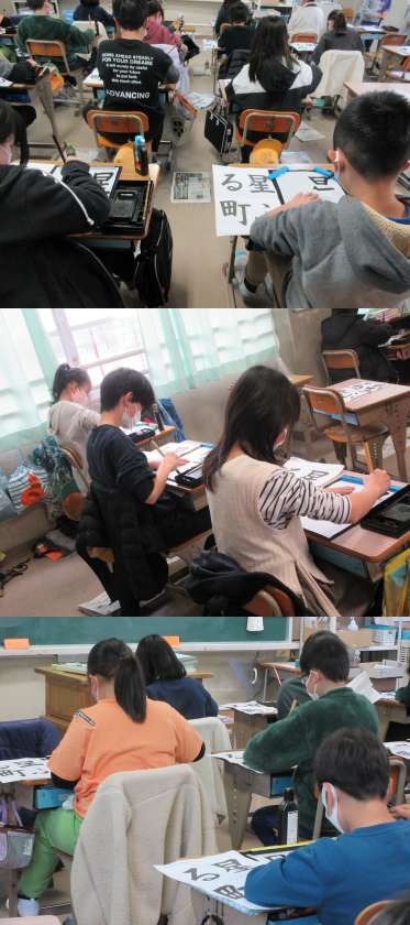 今日は「星ふる町」を書きました。とても集中している子どもたちです。