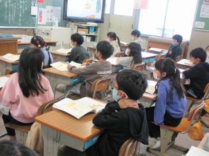 道徳の授業,2組の様子です。 『空色の自転車』を読み,いのちはどうして大切なのかを考えています。