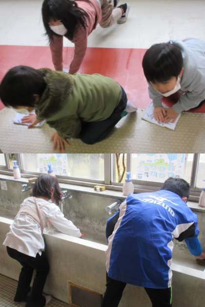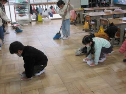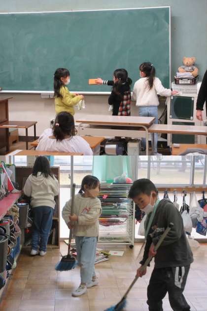 1月27日(金)1年生 公開日 2023/01/27 更新日 2023/01/27 1年 日中でも気温が上がらず冷たい雨も続いていますが,そうじの時間もいつも通り一生懸命取り組んでいる子どもたちです。 写真は1年生の様子です。