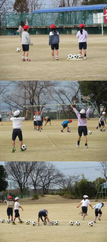 少し風が冷たい運動場ですが、子どもたちは元気に活動しています。