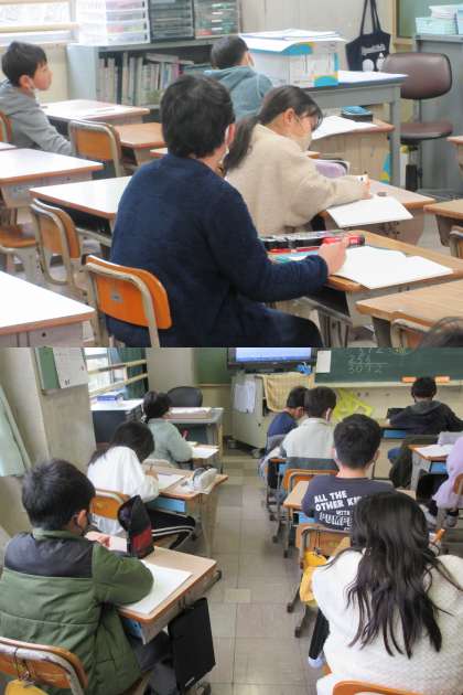 少人数授業で3つのクラスに分かれて学習している3年生の様子です。