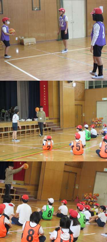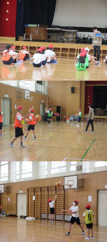 体育館ではバスケットボールに取り組む1組の子どもたちの姿がありました。