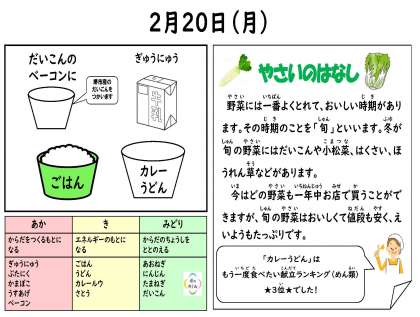 2月20日(月)今日の給食