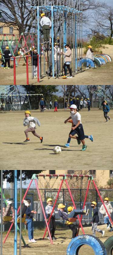 遊んでいる中で担任の先生も走っていました。後で聞くと、「逃走中」をやっていたとか。先生はハンターだったんでしょうか。とても楽しそうでした。