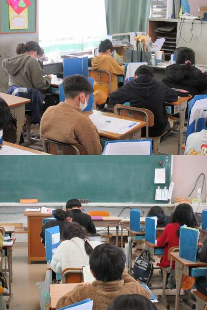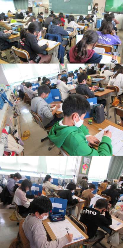学年末の国語まとめテストに真剣に取り組んでいる2組の子どもたちの様子です。