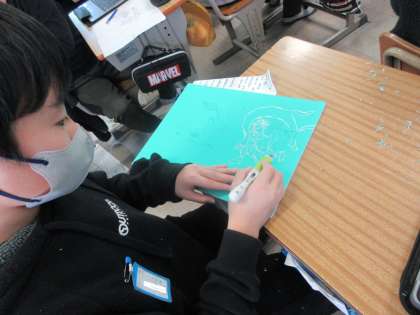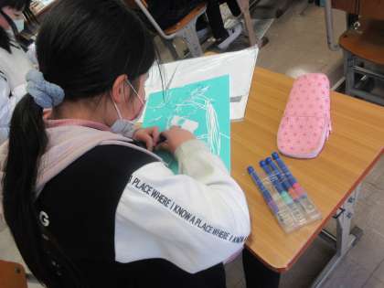 様々な名画を自分なりに版画であらわしています。皆、集中して頑張っています。