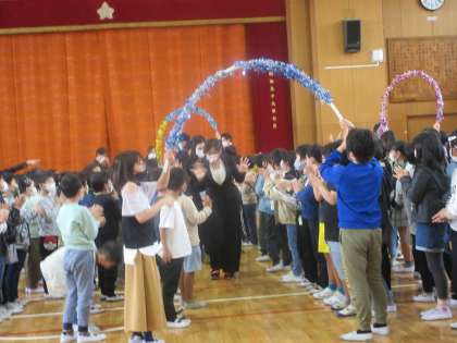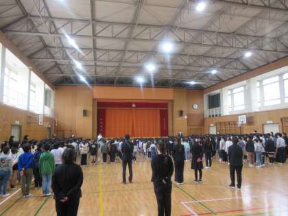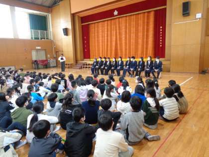 子どもたちは離任する先生の話をしっかり聞いていました。