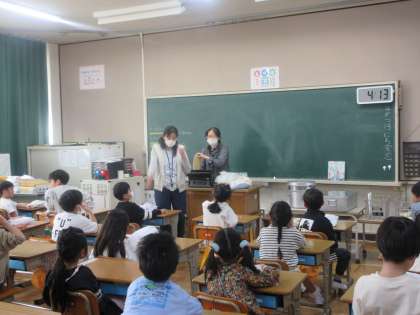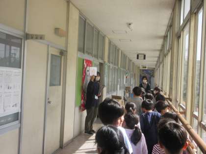 1年生は学校の各教室等を見学したり、栄養教諭の先生から給食について説明をしてもらったりしています。