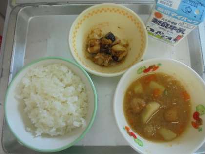 今日の給食は「ごはん・牛乳・じゃがいものそぼろ煮・さばのごまみそ焼」でした。