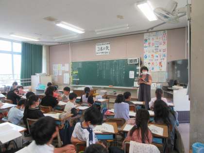 2組は社会です。校区にある様々なお店などについて発表しています。