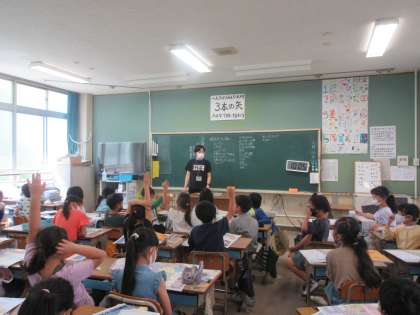 1組は国語で説明文「こまを楽しむ」の読みとりの学習をしています。