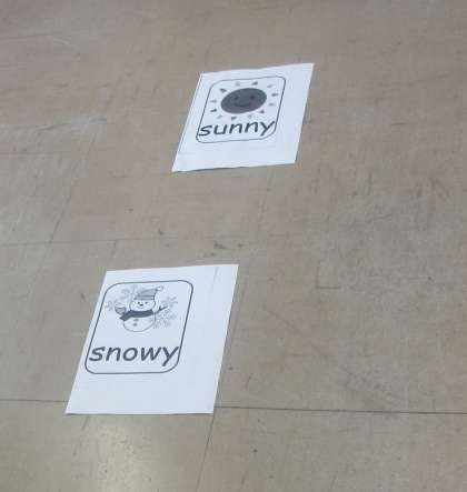 今日はNSの先生と天気の呼び方を覚えるゲームを楽しんでいます。