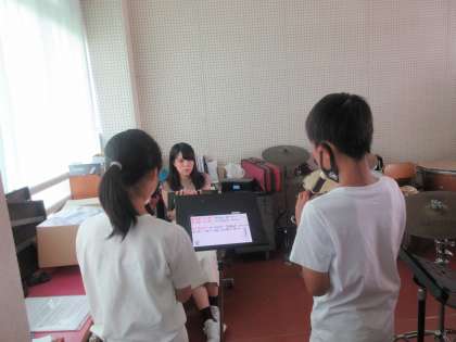 5年生はリコーダーのテストをしています。