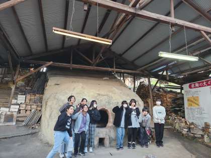 のぼり窯の前で記念撮影です。