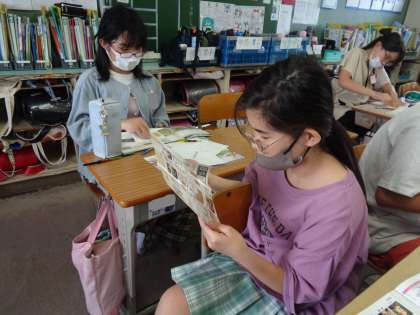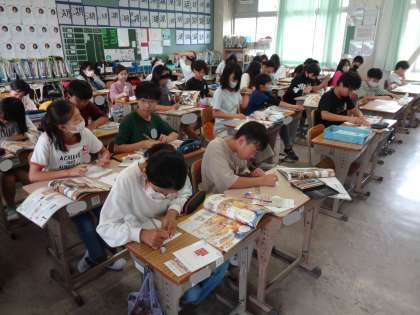 先日の校外学習のことをまとめています。しおりに、びっしりと書き込んできた子どももいます。さすがですね。
