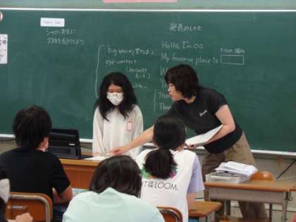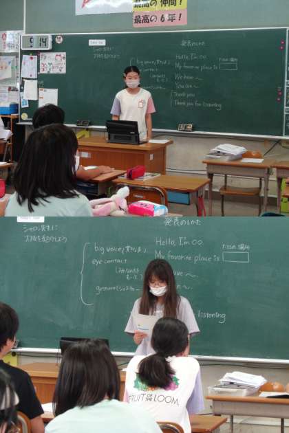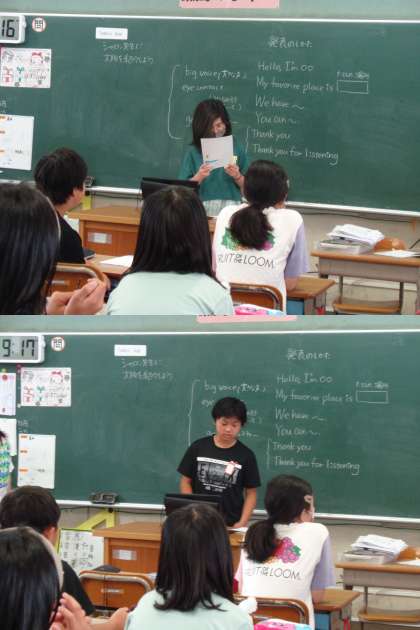 英語の授業中です。 前回までに考えた大阪のよさを、NSの先生に紹介しています。 やっぱり「あれ」でしょう!出たでしょうか?