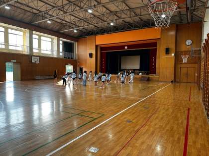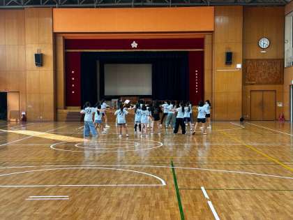 放課後の体育館で桃教スポーツアカデミー ダンス教室の子どもたちが活動しています。
