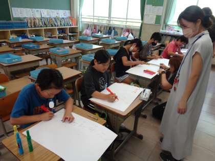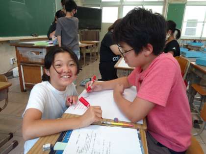 児童会では、夏休みに向けてのことや募金活動の結果報告など担当を決めて活動しています。