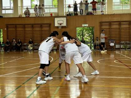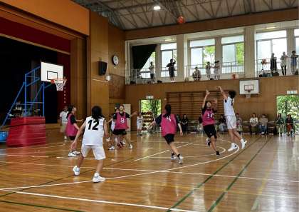 校庭開放でバスケットボールのチームが、試合をしていました。