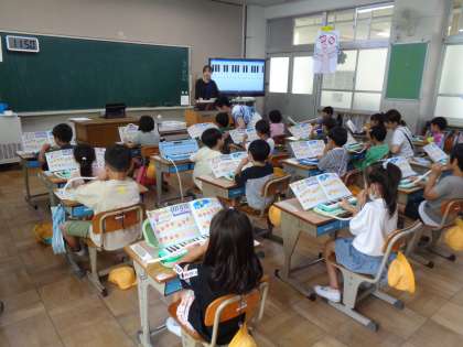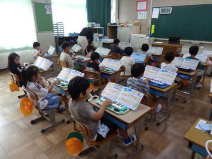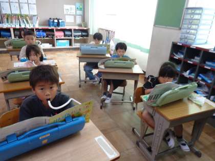 鍵盤ハーモニカを使って、ドレミの演奏の練習をしています。