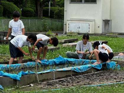 5年生の子どもたちが、田植えの続きをしています。