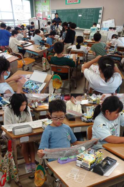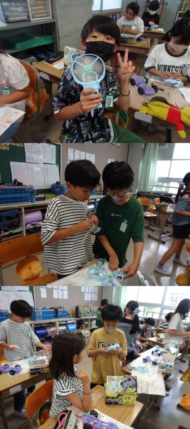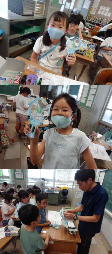 理科の実験キットを使って実験をしたあと、自分用の扇風機を作っています。