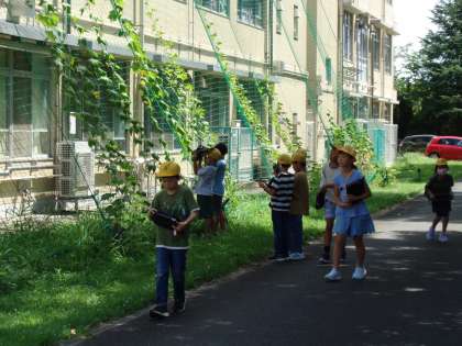 春に観察した動植物が、どのように変化しているかを調べています。