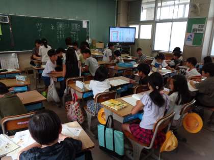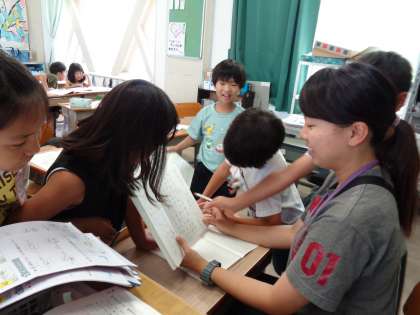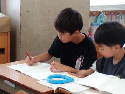 文章の組み立てを考える学習に取り組んでいます。考えた文が、よりいい組み立てになるように、担任の先生といっしょに見直しています。