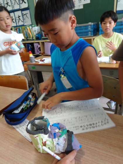 図工の作品の鑑賞をしています。